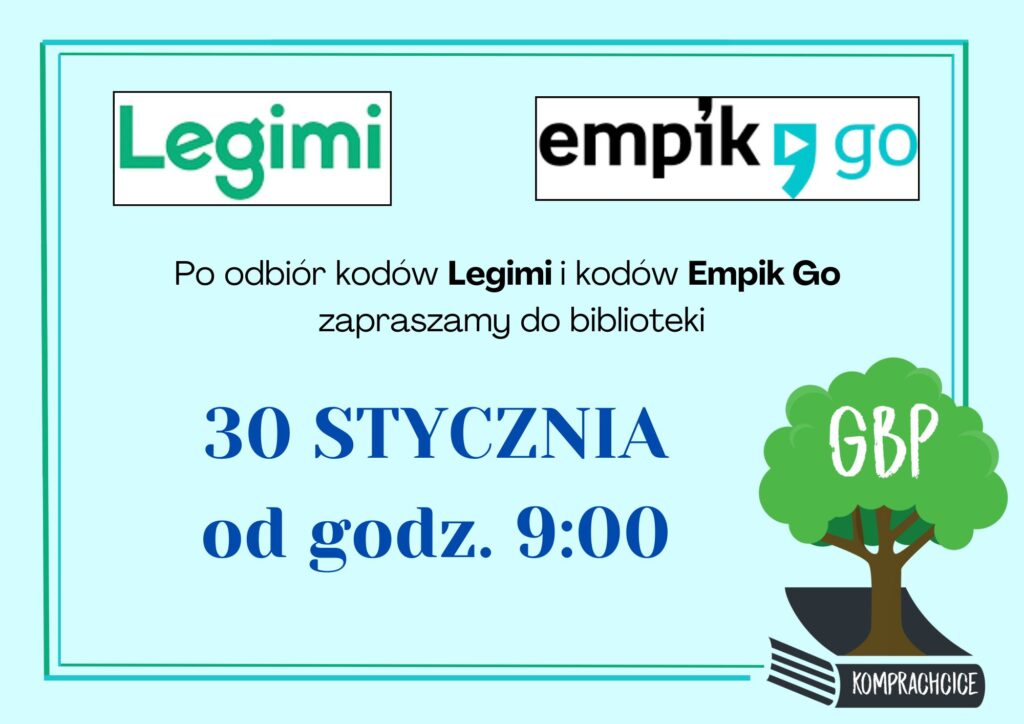 Kody Legimi i Empik Go na miesiąc luty będzie można odbierać od 30 stycznia. W czasie zamknięcia Oddziału dla dorosłych (2-6 lutego) będą one dostępne w Oddziale dla dzieci i młodzieży.